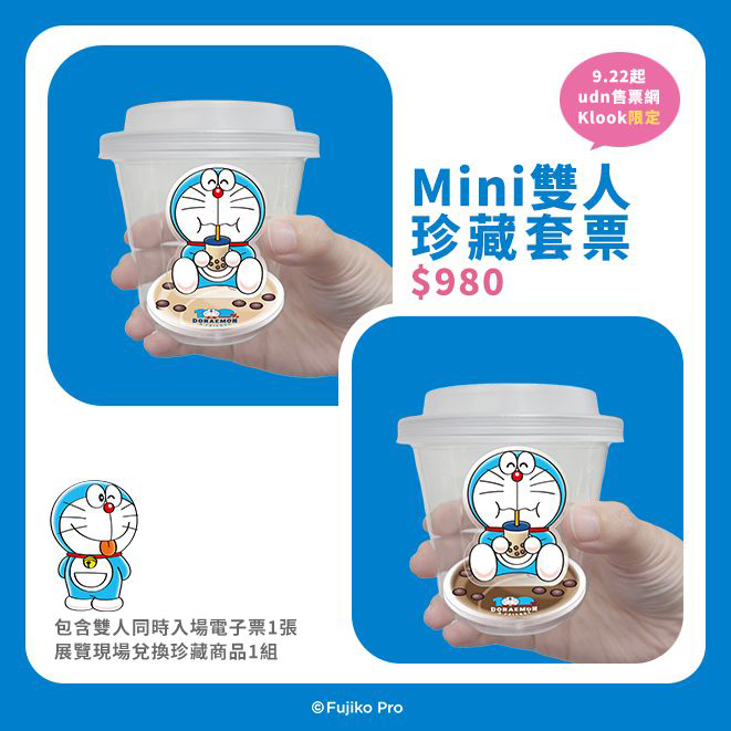 註:預售票已開始販售!11/13前購買400元(原價490元),另有Mini雙人珍藏套票 980元、特典套票1500元;入場參觀皆贈展場限定徽章,雙人套票含高雄場限定哆啦A夢珍奶分享杯。
