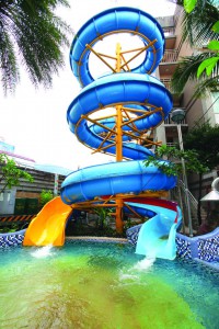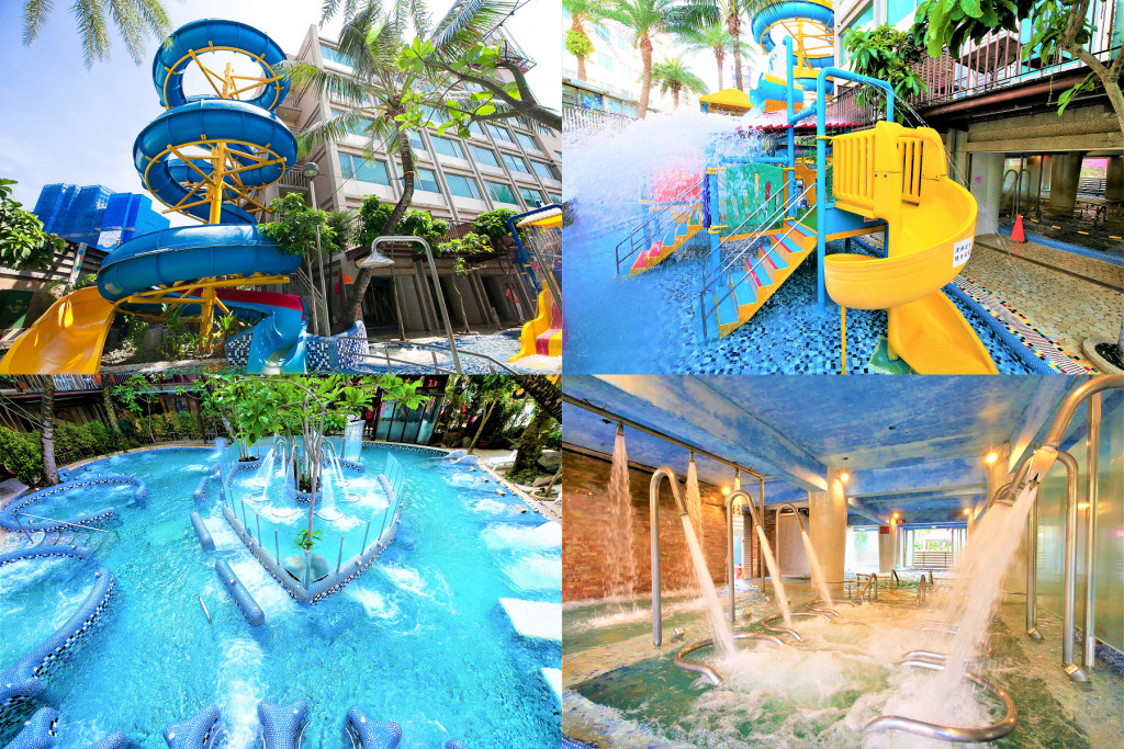 若是小朋友來的話,飯店在水樂園也準備了一個小朋友版本的水上溜滑梯,讓小小朋友也能開心玩水。