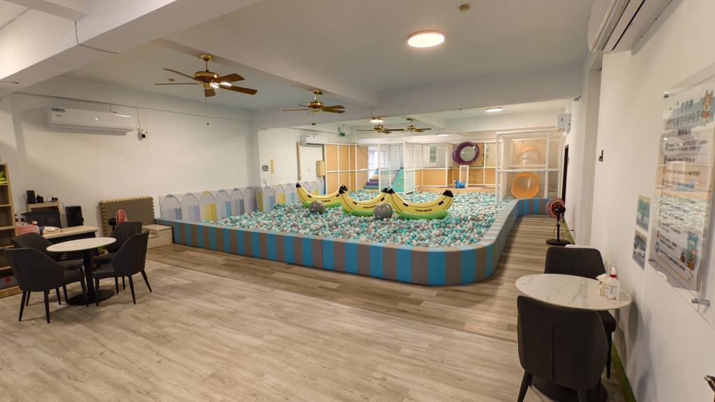 館內分為2歲以上球池區與2歲以下幼兒區,大大的球池區很受小朋友歡迎,球池上擺放3座香蕉船、大球與跳跳馬等遊具,後方還有攀爬斜坡/階梯與溜滑梯;有個安全的空間讓小朋友放電,爸媽也能稍微放鬆休息一下。