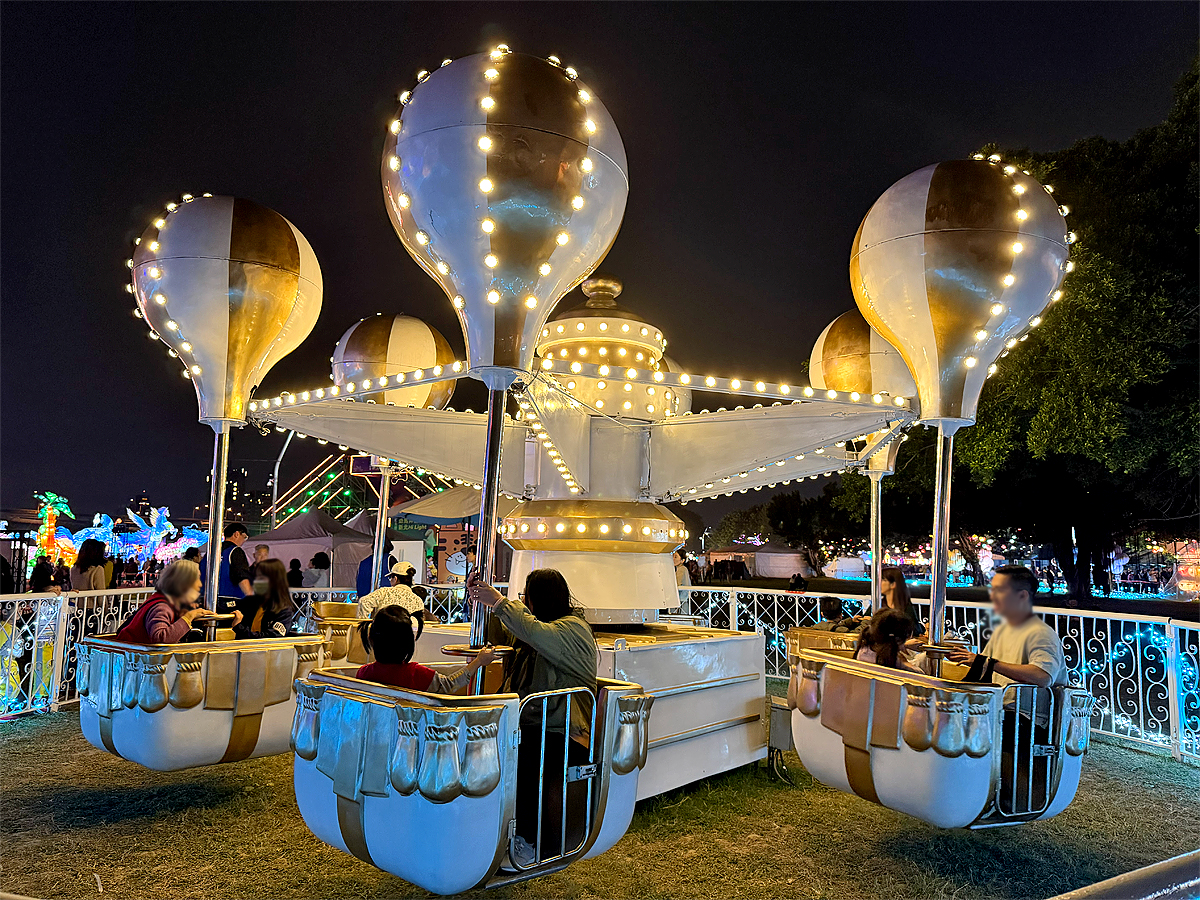 除此之外,還有旋轉木馬、小火車、旋轉熱氣球、極速飛車共4座遊樂設施可以免費遊玩哦!