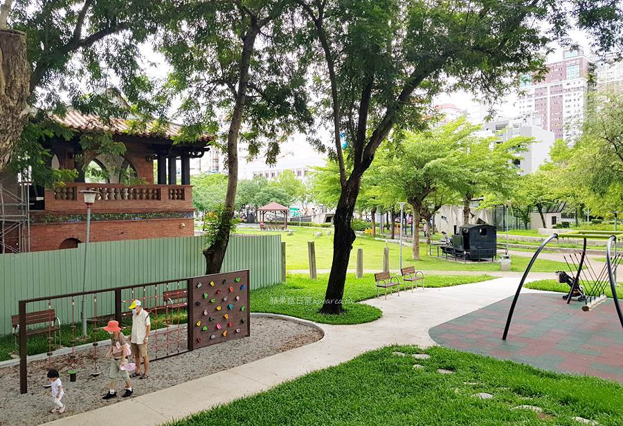 公園有大片的綠地加上茂密的林蔭,綠意盎然,氣氛悠閒,常見大人小孩在此散步遊憩。園內有荷花池可以讓小朋友餵魚,2022年4月全新兒童遊戲場完工開放,打造山坡磨石子溜滑梯、水管滑梯、攀岩牆、多人旋轉盤、擺盪大索以及直立式繩網攀爬架。溜滑梯與攀爬架使用細礫石舖面,也是小朋友的玩沙區。
