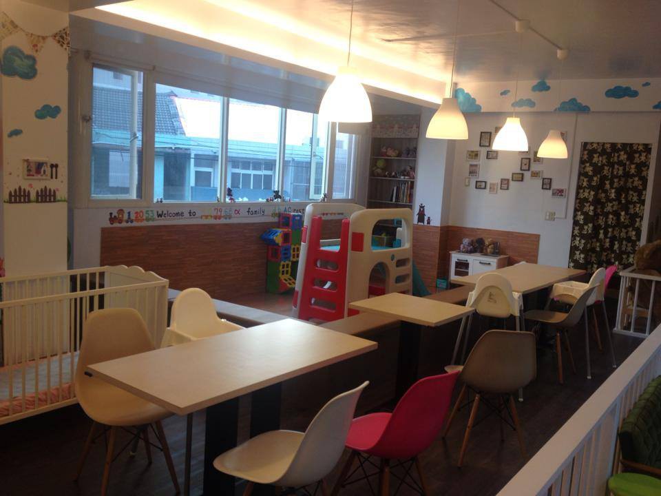 餐廳也準備遊戲的空間,小溜滑梯,廚房組,適合幼稚園及學齡前小孩們玩的玩具,像是積木跟一些增加手部靈活的小玩具。