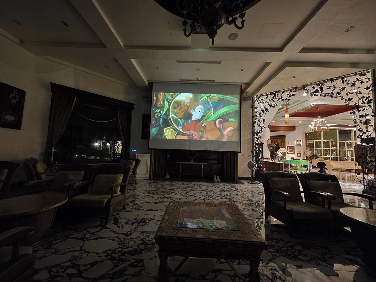 用完餐後,記得帶小朋友到飯店大廳旁的八角廳,這裡每晚20:00會播放電影。