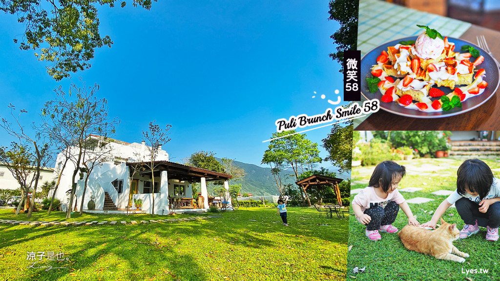 微笑58民宿位在南投埔里,除了住宿外,也有餐廳供應早午餐與下午茶。民宿本身是一棟純白色地中海風建築,外面有大片草皮讓小朋友跑跳,也有沙坑可以玩。