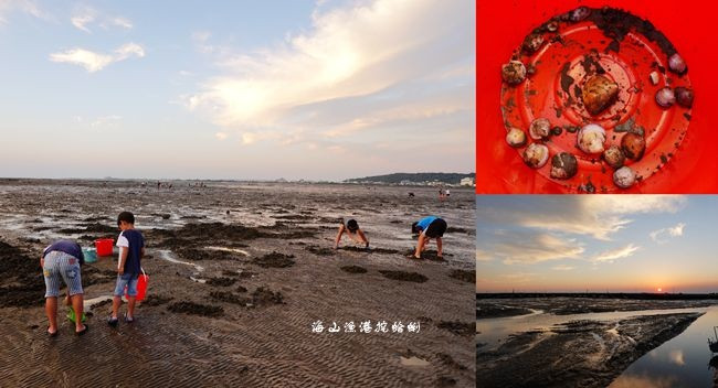這裡是溼溼的泥地,所以小朋友來可以玩沙玩水,還能夠觀察生態,可以看到不少的小螃蟹;以前這裡可以挖蛤蜊,不過近年法令將海山漁港加入濕地管制區,不能挖蛤蜊了哦。