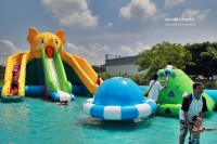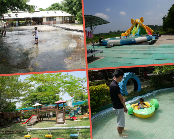 另外還有超大氣墊滑梯、溜下來直接泡到淺淺的水池。