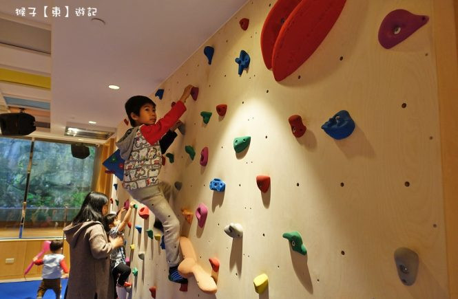 在遊戲區的最後面還有一面攀岩牆,小朋友可以在這裡練習攀爬,旁邊也有沙發或椅子等能讓陪同的家長坐下來休息一下。