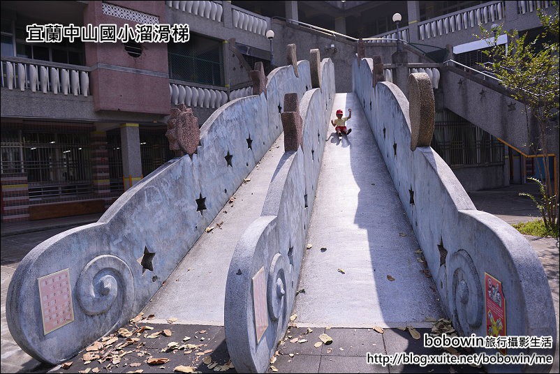 宜蘭市的中山國小,因學校有兩座獨特的人氣溜滑梯而獲得許多人注意。且近宜蘭車站、幾米廣場公園和丟丟銅森林列車,建議可以排在一起玩。
