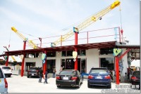 餐廳裡面有用真的吊車手臂在天花板做裝飾,另外用餐的桌子都是用吊車引擎做成的,可以帶喜歡交通工具的小朋友可以來這裡看吊車。而餐廳的價位也很平實,提供台灣道地小吃。肉燥飯45元,便當也只要60元起。筍干、苦瓜等小菜,也都是10-25元左右。