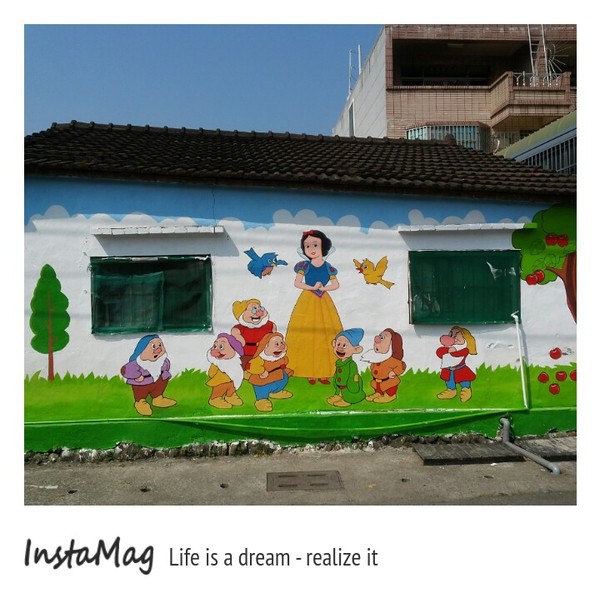 村子的彩繪內容非常豐富、多元,有許多人熟知的兒童故事書主角,如:白雪公主與七矮人、三隻小豬、小紅帽等,以及知名的動漫主角,如:龍貓、蠟筆小新、Q版的海賊王人物、櫻桃小丸子等。