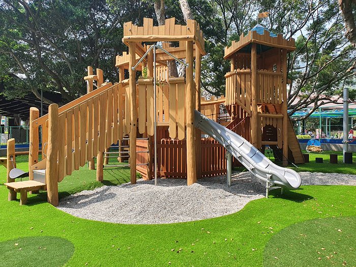 全新的遊戲場以城堡樹屋為主體,略帶歪斜的樹屋好像小朋友拼湊而成,充滿童趣風格。