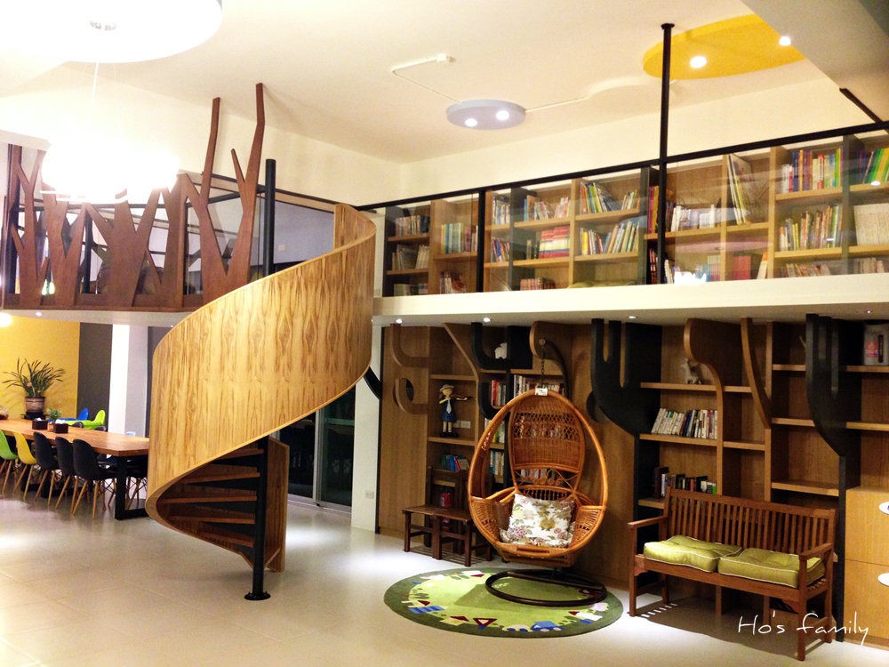 夢想森林充滿童趣的悠閒氛圍,結合鞋櫃、木椅、書櫃、旋轉梯…就是樹屋,以樹屋為中心延伸一樓為餐廳、兒童遊戲區,由旋轉梯而上有個秘密基地-閣樓,或玩或看書,好不愜意。備有二人及四人家庭套房,運用不同的裝潢及擺設,打造多款主題套房,溫馨舒適又賦予童心。