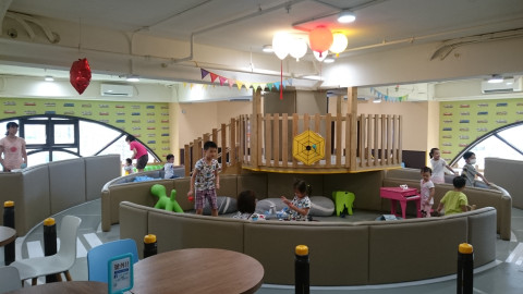 館內另一角有廚房遊戲組、大型積木組。就在窗戶旁,採光極佳。