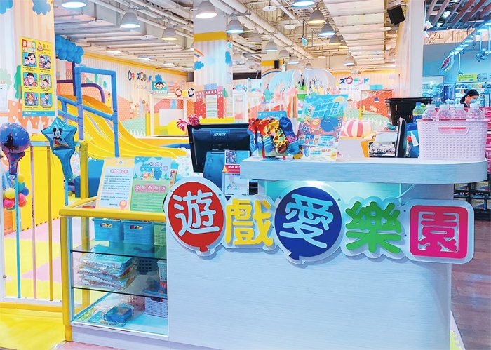 旗艦店除了保有原來愛樂園裡的基本設施,還增加了像是由4個溜滑梯組成的大型溜滑梯球池,滑梯上繪製可愛圖像,增添活潑氣氛。