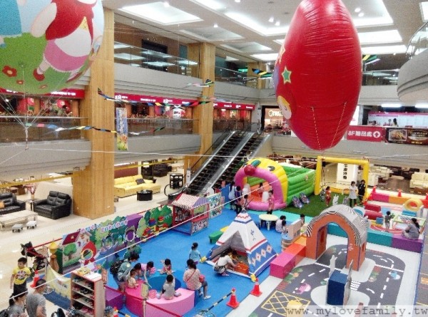 這次的行動樂園規劃讓小朋友能在裡面一起運動與玩樂,裡面有跳跳氣墊床、幼幼500障礙體驗、還有追風小車、體能運動場、氣墊船小釣手、扮家家酒區、歡樂營地、益智學習及積木區等,眾多的遊戲活動都在涼爽的百貨公司室內遊樂園內舉行。