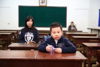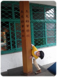第二堂:影片欣賞,玉兔鉛筆學校將這裡佈置成國小教室的樣子,讓人懷念的矮木桌椅,好像回到學生時代。影片播放鉛筆的製作過程,原來鉛筆芯還要經過油炸程序,小朋友們聽了好驚訝。