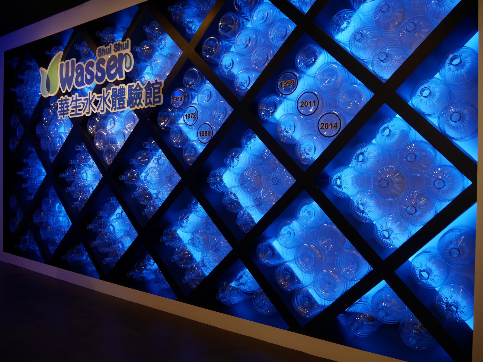 首先是B1桶裝水生產線,利用機器,可在30秒將長條狀的瓶胚變成一個大水桶。接著是裝水桶的清洗、消毒、裝水等流程。然後到2樓的體驗館,這裡可以讓小朋友體驗,將B1參觀的瓶胚放入瓶胚吹瓶裡,利用3D技術摸擬出水桶產生過程。
