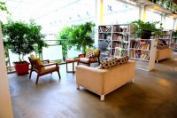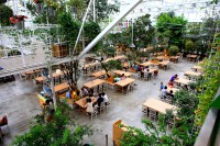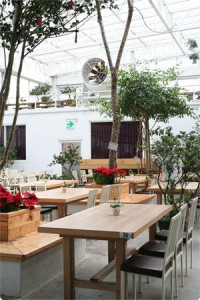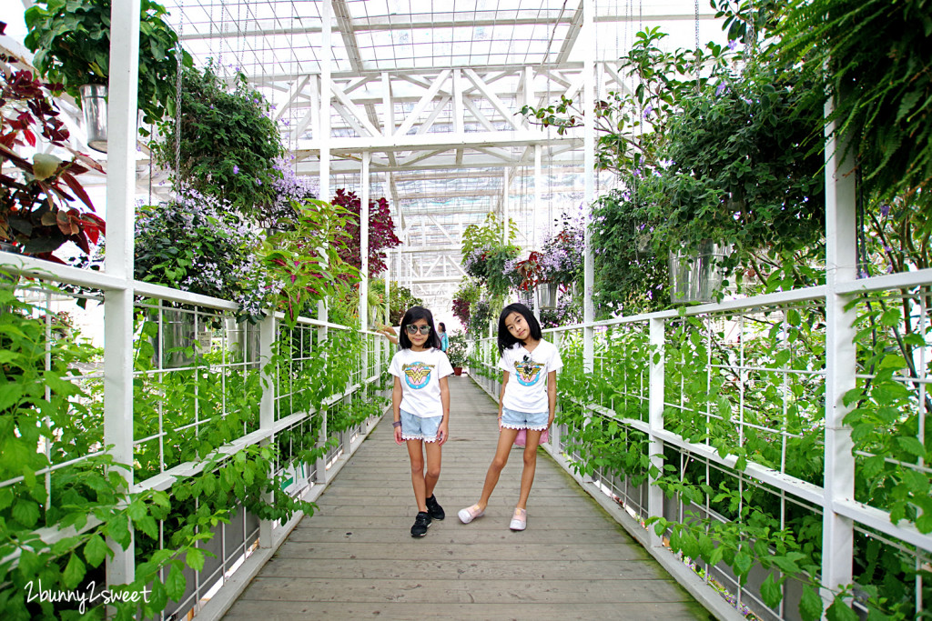 香草菲非整個建築物就好像一個超大的玻璃屋,超級挑高的室內空間配上明亮透明的玻璃,讓人在室內也感覺像在室外一樣明亮。裡面分成一樓飲料區、用餐區、產品銷售區、DIY手工區(100-250元),二樓則有一個空中步道,配上賞花區、薰香DIY。