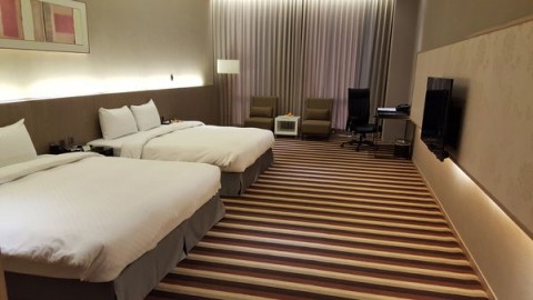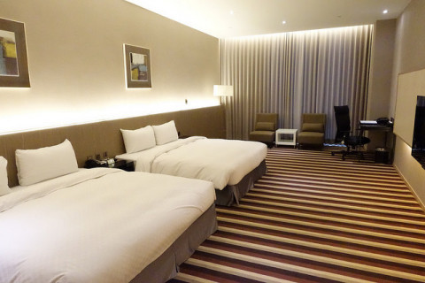 君樂飯店擁有210間客房,挑高的大廳展現出它的氣派。每間客房都很寬敞,無壓迫感,條紋地毯提昇房間時尚質感。想放鬆舒壓,房內也有大浴缸可以泡澡。大片的落地窗,提供給房客最佳的視覺空間。