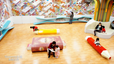 兒童體驗空間是位在2樓的「兒童繪本區」,每天開放8場次,每場次50分鐘,可容納12組親子,平日有1場(假日2場)故事導賞時間。