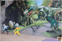 這幾年公園陸續新增彩繪牆與造景,天橋被恐龍佔據,走在天橋內仿佛走入遠古時空,由水裡冒出頭的大腕龍非常巨大,接著還有粉紅龍加入、暴龍爬上電塔、巨大的腳印變成小朋友愛的沙坑,2022年3月新增摩登原始石頭車,恐龍公園變的愈來愈熱鬧了。