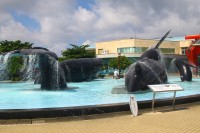 入口處有二座親水廣場,最吸引大家的就屬鯨魚親水區,大隻大型鯨魚如栩如生躍出海面,小朋友最愛繞著鯨魚玩水。入館第一個看到的是台灣水域館,另一側是珊瑚王國館,世界水域館與鯨典館是獨立的一棟,這裡真的很大,建議安排一整天在這裡才能玩的盡興。