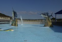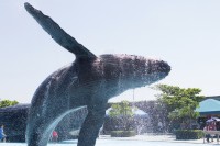 最吸引大家的就屬鯨魚親水區,大型鯨魚如栩如生躍出海面,小朋友最愛繞著鯨魚玩水。