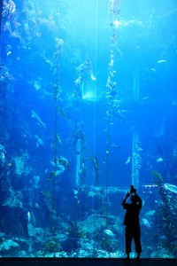 世界水域館在主館後方,館前巨大的章魚裝置藝術非常吸睛,這裡展示海藻森林、深海、極地水域物種,還有古代水域,另有適合小朋友邊遊樂邊學習的探索教室。