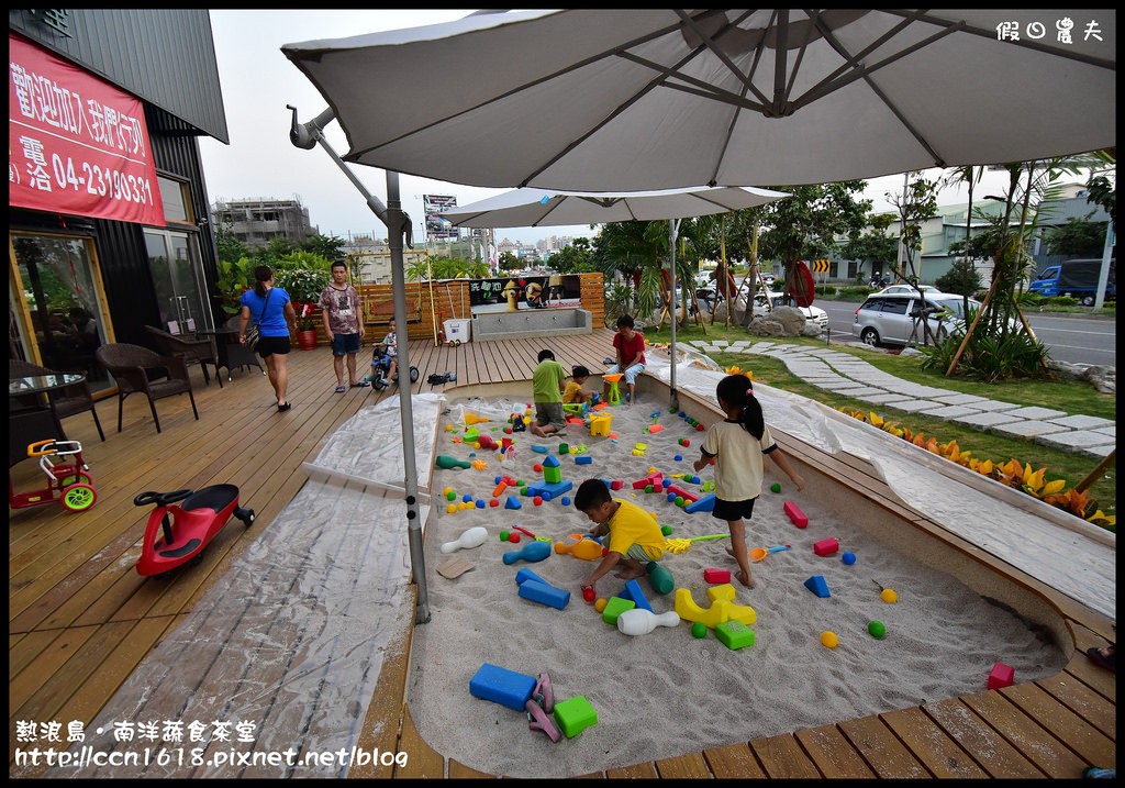 熱浪島南洋蔬食茶堂在中南部已有三家分店,台中是總店,原本在大墩十街,於2015/08/01搬至向上路擴大營業,用餐區變的更寬敞,還有戶外大沙坑、大型搖搖馬與玩具車。