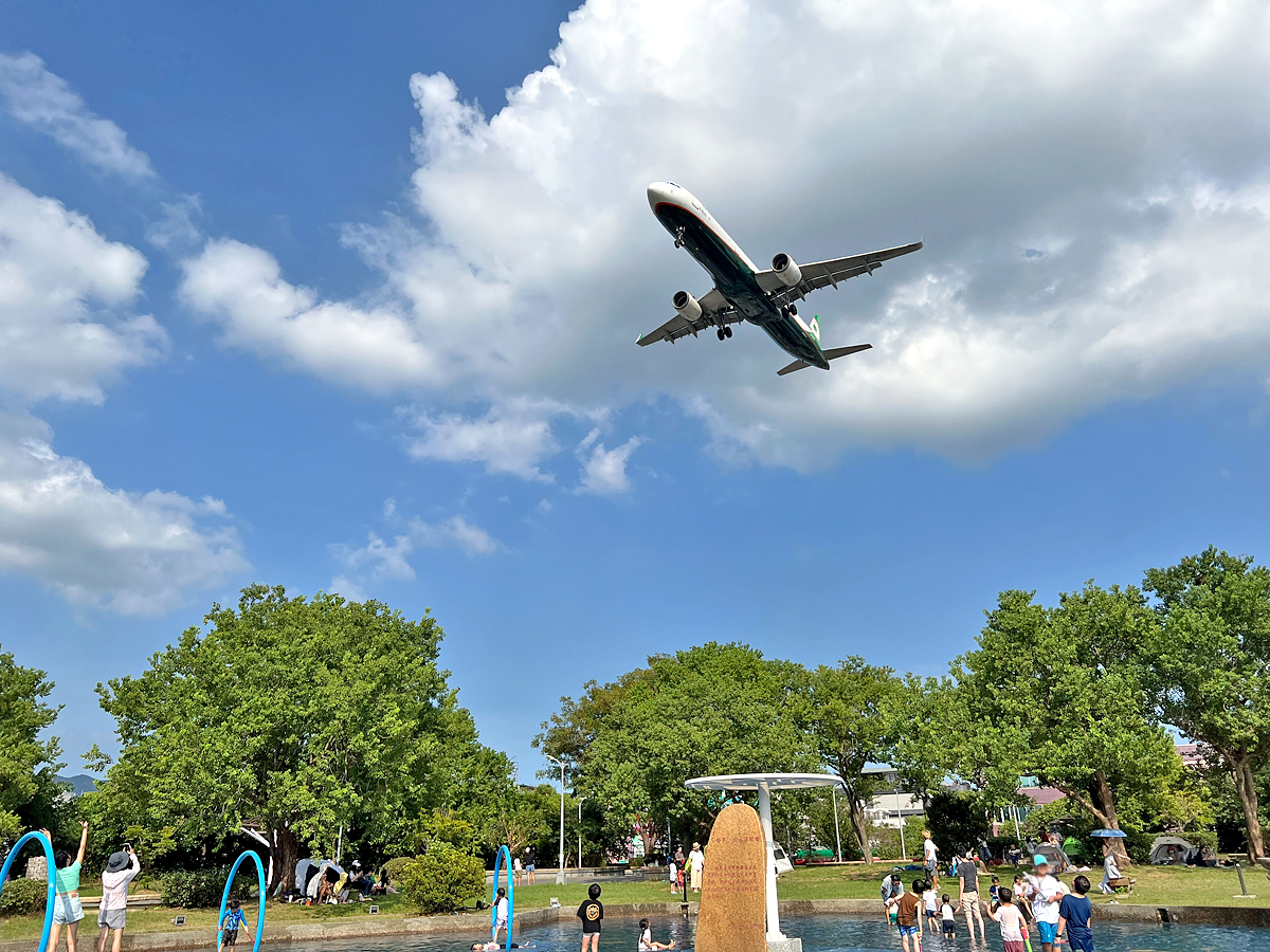 且這裡近松山機場,每一陣子都有飛機降落,距離超近的,小朋友只要聽到轟隆隆的聲音,都忍不住抬頭觀看。