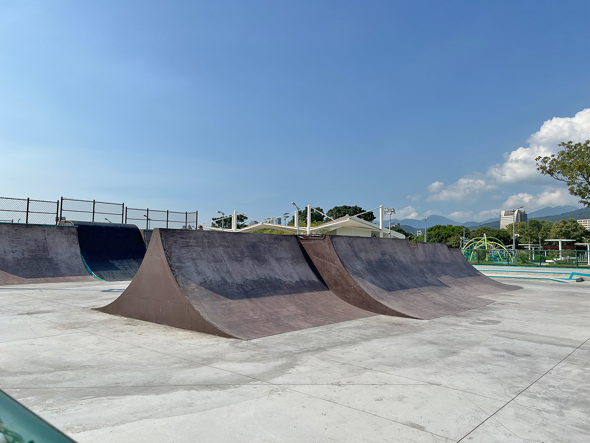 戲水池也全面更新,淺淺的池子超適合小小孩來玩,水池上設置噴水圈與會旋轉的噴水設施,可以玩上好一陣子。極限運動場整新後範圍變大,設施也更多元,另一側還有全新的體健設施可以使用。