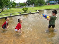 水池上設置噴水圈與會旋轉的噴水設施,可以玩上好一陣子。