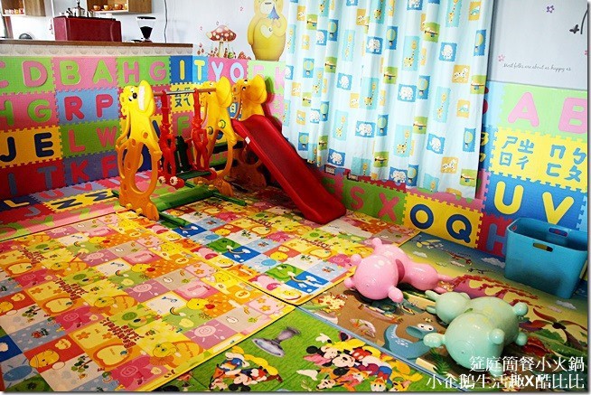 筵庭不像一般店面,好像走入住家裡,前方有個大庭院,庭院一角有個大搖椅與盪鞦韆,候餐時可以先帶小朋友來此晃晃。用餐區裡也有規劃一區兒童遊樂區,有小小孩的溜滑梯/盪鞦韆組、跳跳馬、積木、玩具車車、繪本童書與其它小玩具。空間不大,但也夠讓小朋友轉移注意力。