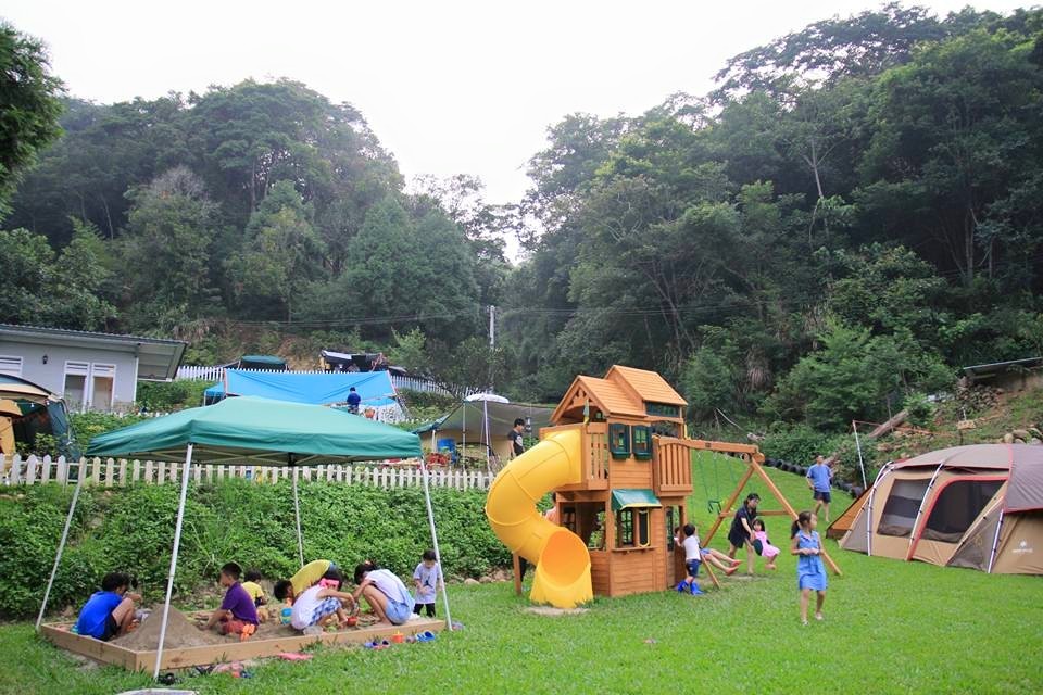 這裡分有碎石子與草地營位,碎石子主要提供露營車與車頂帳使用,營地共分6區,可搭37帳。營地裡有二處玩沙區與一個樹屋溜滑梯盪秋千組,玩沙區旁也有提供洗腳區。營本部旁還設置了兒童閱讀區,坐在舒適的木棧板上,樹蔭擋掉烈日,微風徐徐,小朋友可以坐在這裡看很久呢。
