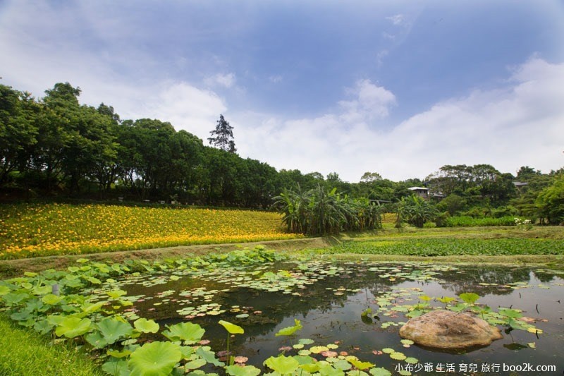 除了賞花,園區內綠意盎然,有大片草地與成群樹蔭,滿植蓮花的生態池,適合帶小朋友來趟悠閒的假日親子行。