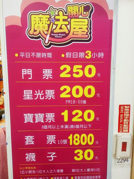 開心魔法屋在台灣已有三間分店,每家分店的遊樂設施都不盡相同,嘉義旗艦館不論平假日1大1小入場票300元,平日不限時間,假日限3小時,FB打卡折價30元,若遇下雨還能折價20元。