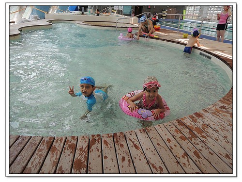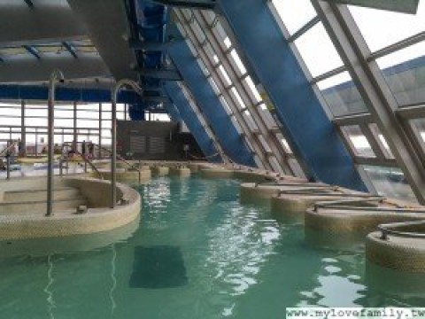 這裡收費不貴,成人只要100元,泳池三面皆採用大片玻璃帷幕,採光極佳。兒童池水深不深,適合小小孩,這裡也可以使用泳圈與水槍,記得幫小朋友準備。