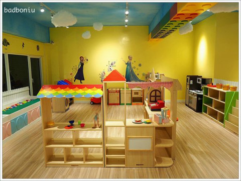 館內共有二層樓,有動力沙、大小積木區、Tomica車車軌道組、廚房辦家家酒區...等,動力沙位在一樓,分成好幾小區,可以容納多個小朋友,下方收納櫃放置不少挖沙工具給小朋友玩。