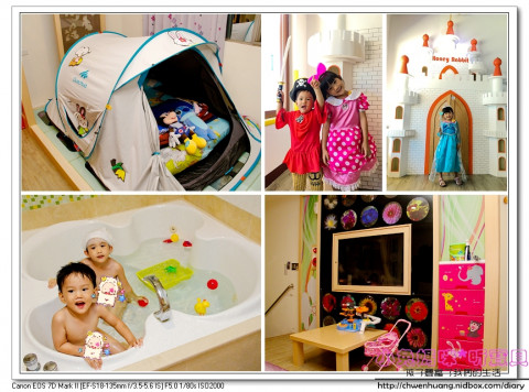 館內有17間特色房型,親子房共有10間,有巴士房、汽車房、公主房、帳篷房...等,房內還有廚房組、公主屋、蹺蹺板等樣玩具讓小朋友玩。(玩具種類依房型略有不同)