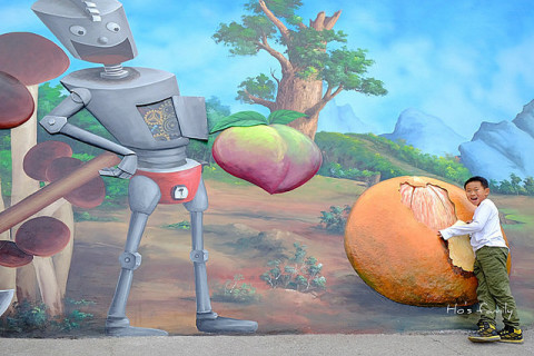 彩繪牆地點就在東豐綠色走廊自行車道旁,帶小朋友來騎腳踏車,可以順路去尋找童話故事。
