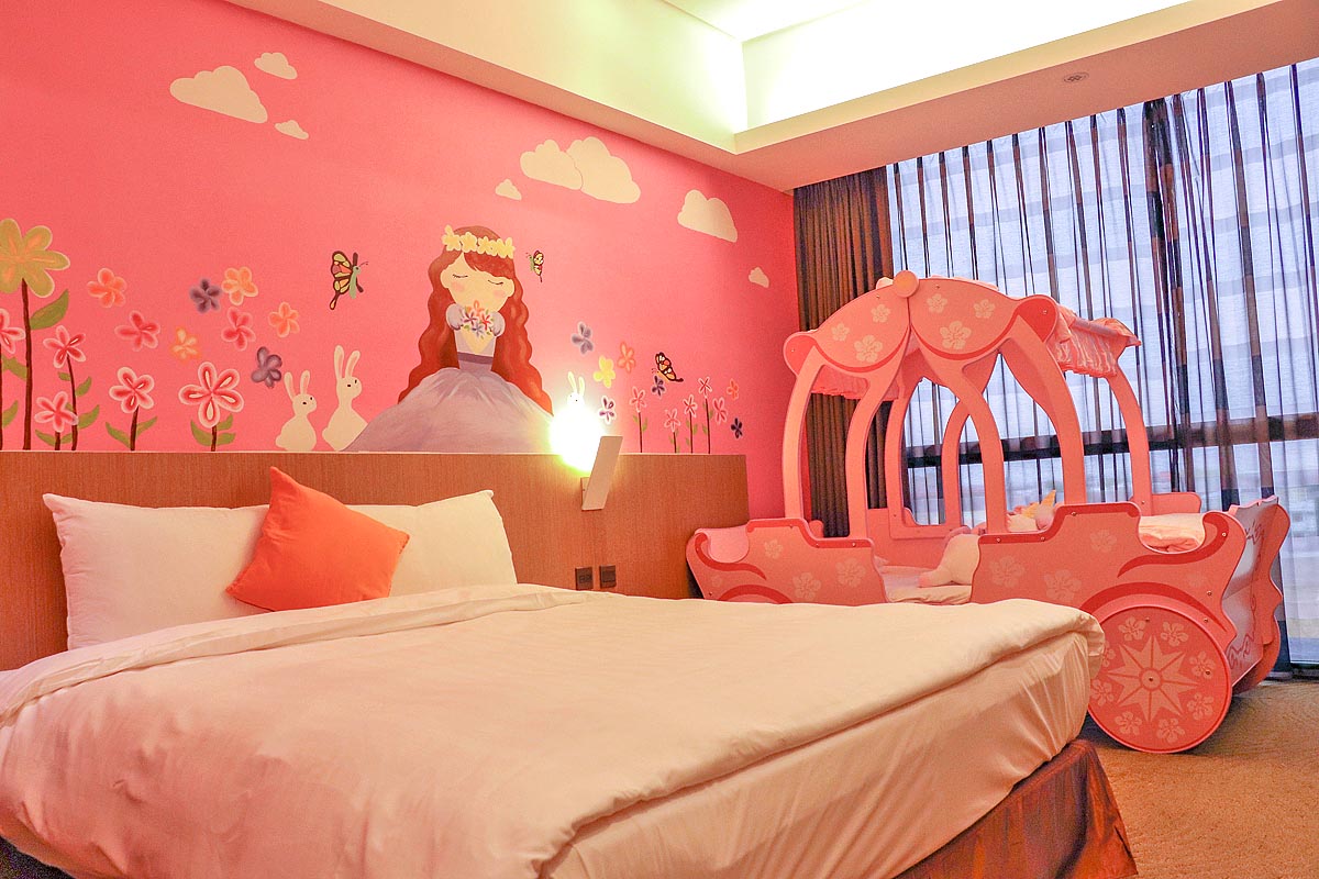 每間主題房都有繽紛可愛的彩繪牆、造型床舖,還有可愛的布偶陪伴小朋友睡覺。