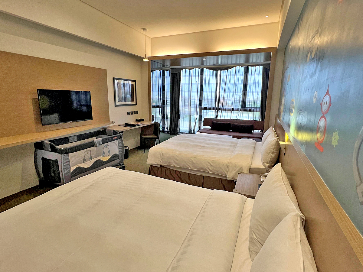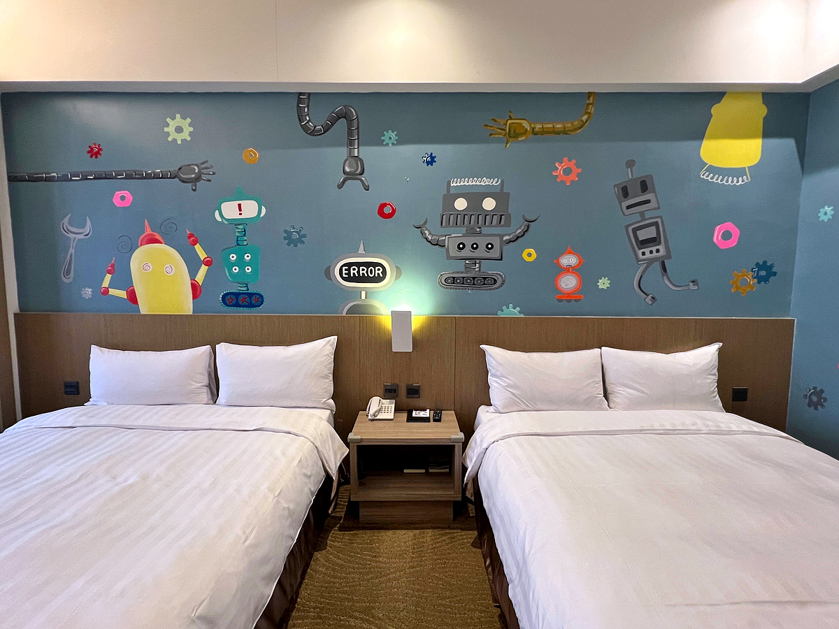 樂億皇家還有專為親子家庭設計的房型,且主題多種,搭配童趣手繪牆,小朋友一進房超開心的。