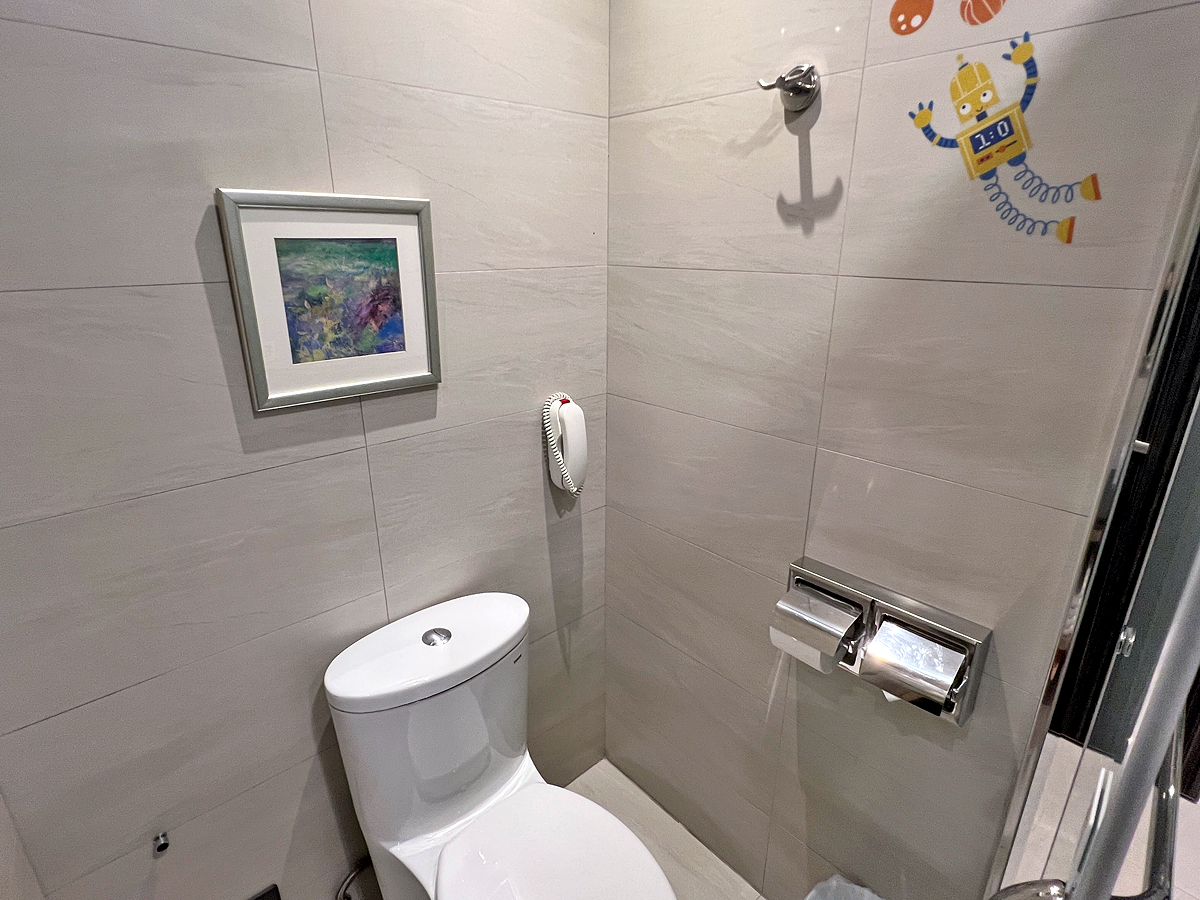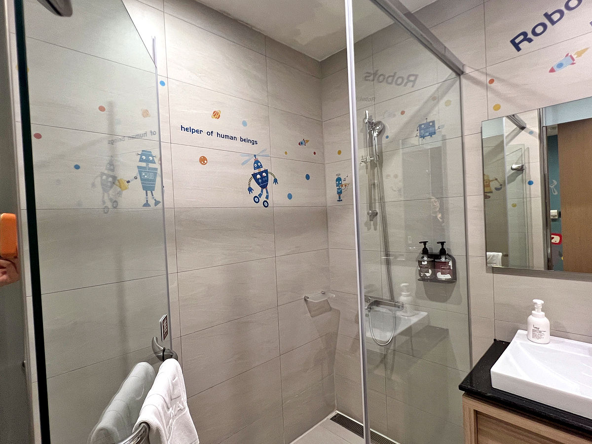 若是入住主題房,衛浴間也有同主題的童趣圖案哦。