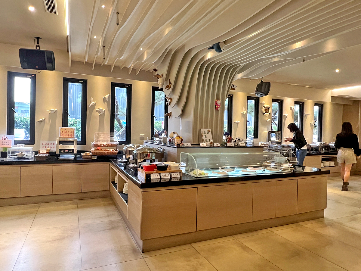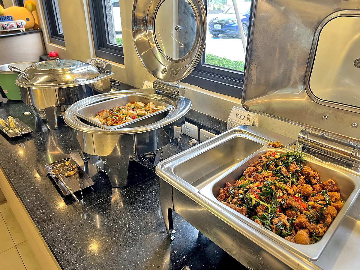 自助式餐點中西式皆有,像是現煎蘿蔔糕、現煮擔仔麵、關東煮、清粥小菜、土司麵包等,也有嘉義特色雞肉飯哦。(早餐內容依當日提供為準)