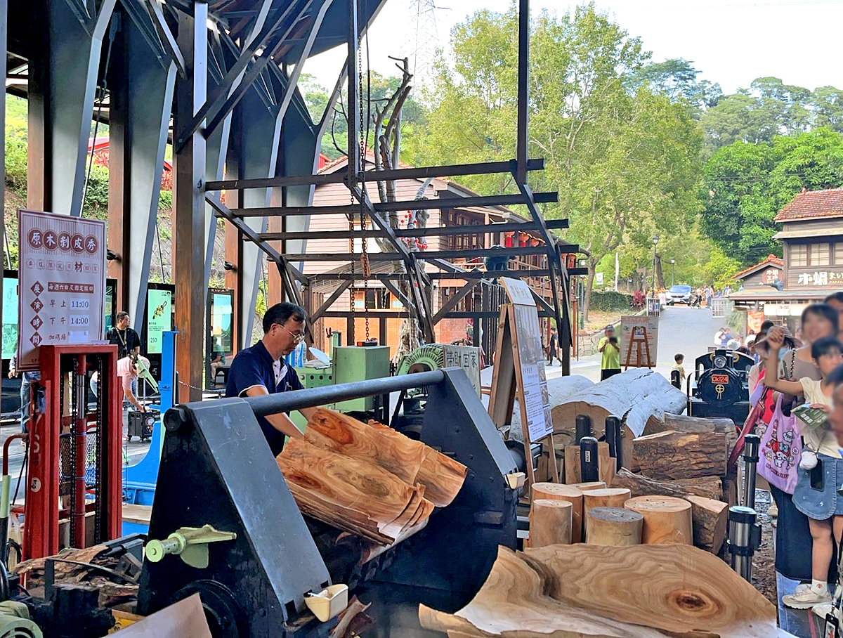 另外展示館在假日11:00、14:00舉辦原木剝皮秀,可以現場看樹皮是如何剝下來,喜歡的話也可購買剝下來的樹皮哦。