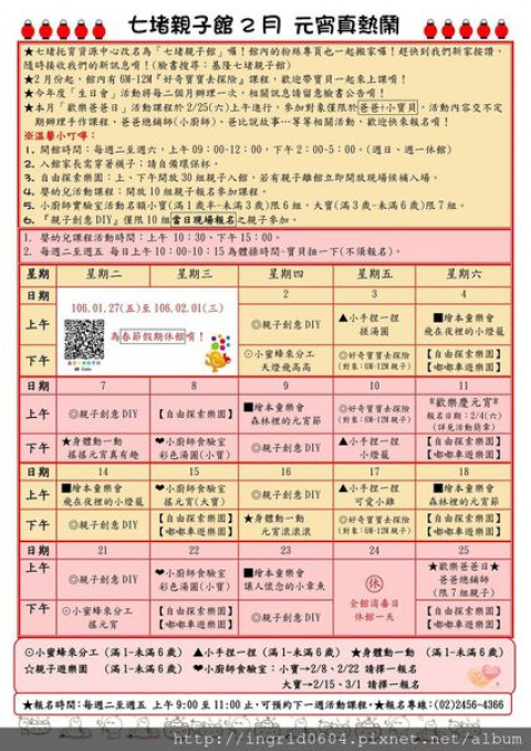親子館會在粉絲頁公告課程表,有的課程限當日現場報名,有的可在每週二預約隔一週的活動,有興趣的家長可上網查看或電話詢問報名。