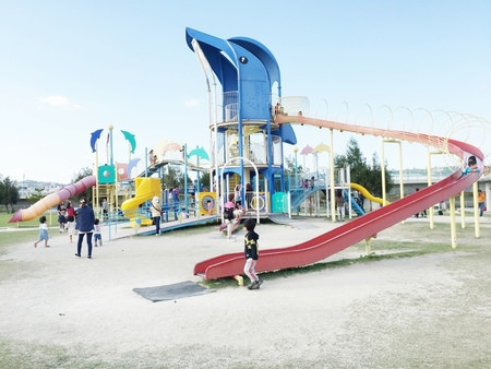 イルカ公園位在日本沖縄,這裡又稱為海豚公園,因為裡面有一座大型的海豚造型滾輪溜滑梯,在這座大型的遊具另外還有其他大大小小的溜滑梯與攀爬設施,可以讓小朋友盡情探索放電。