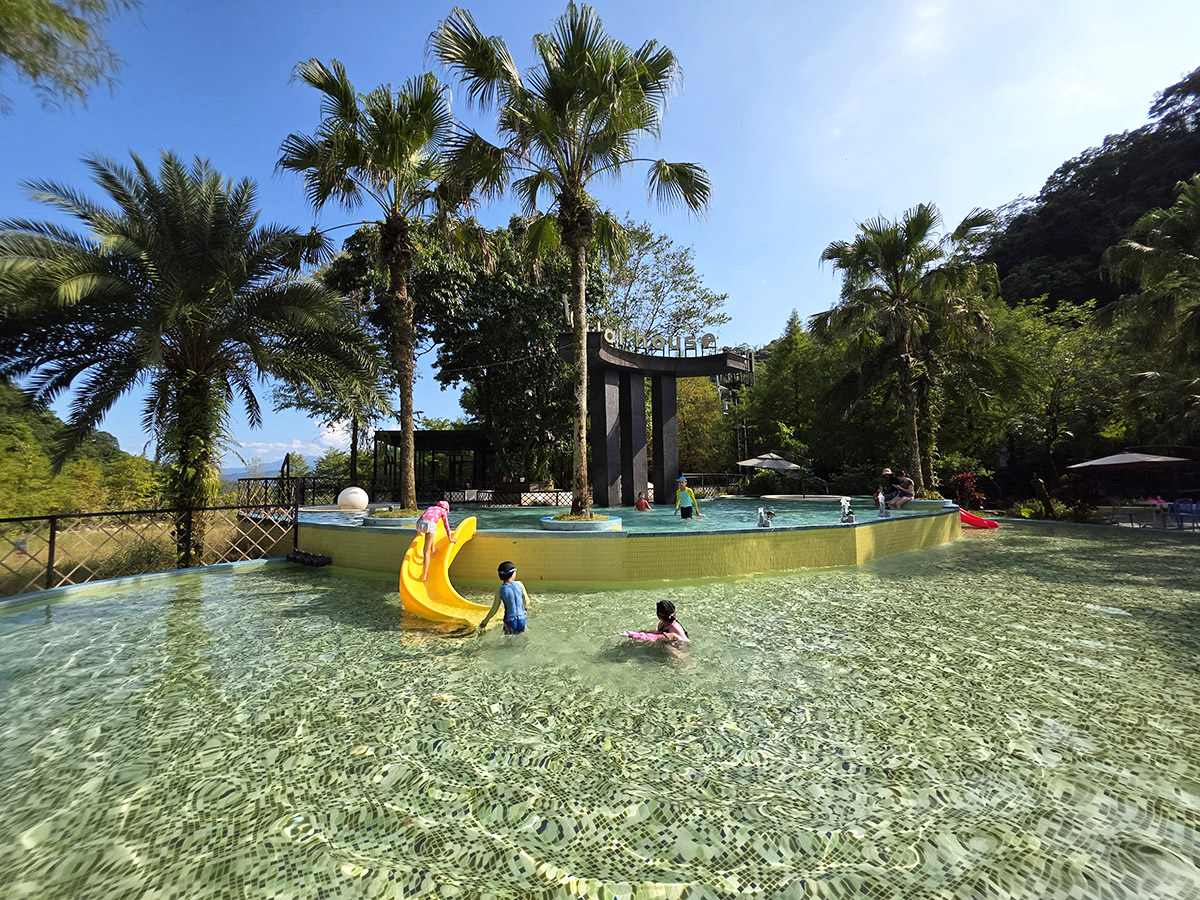 園區還有一個超漂亮的愛心戲水池,戲水池全年開放,水質為天然山泉水,水深約50公分,適合來玩水。