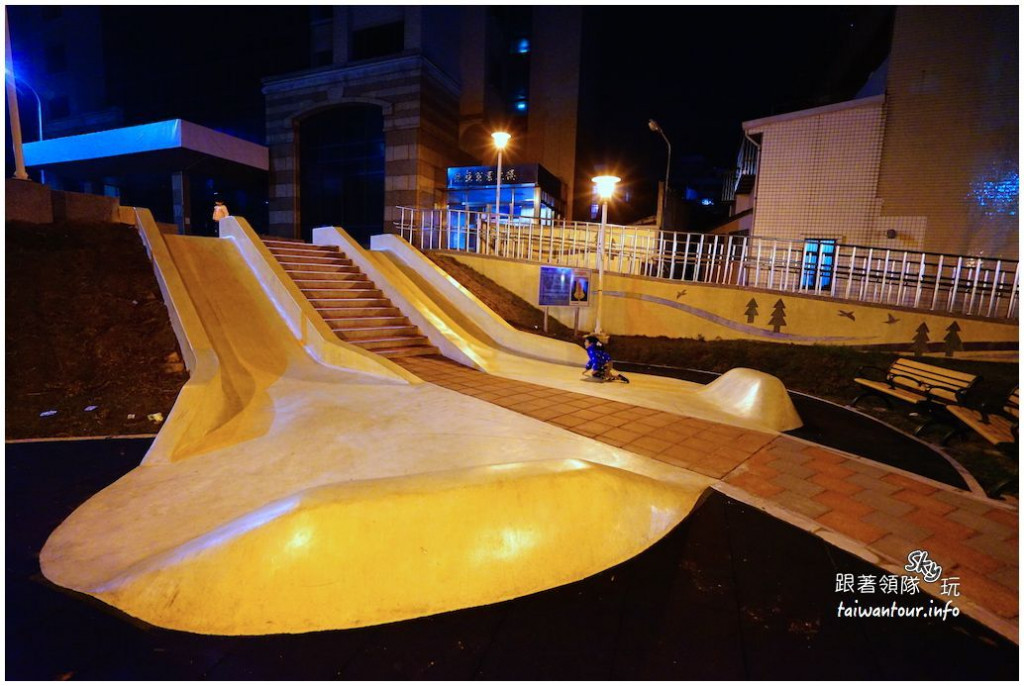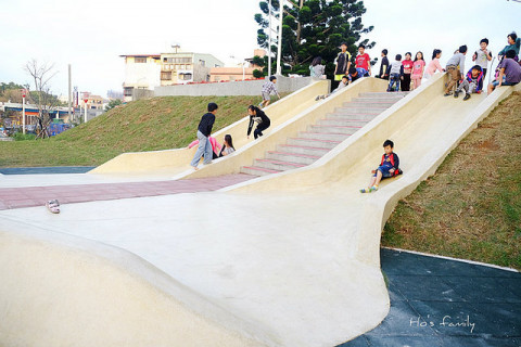 磨石子溜滑梯較適合大一點的小朋友,另一側還有一座小型的塑膠溜滑梯,適合小小孩遊玩,一旁還有簡易的健身設施讓爸媽動動身子,公園空間不算大,不過有個特色溜滑梯就夠讓小朋友玩一陣子了,公園附近即是林口老街,可以先去逛逛找小吃再帶小朋友來放電。