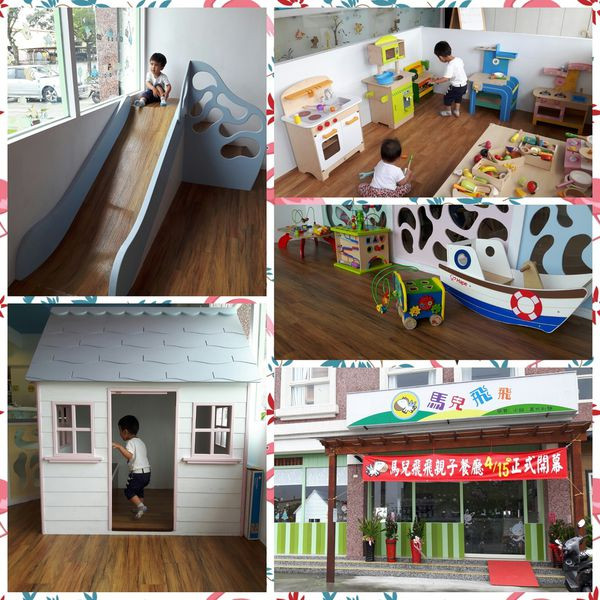 位在宜蘭羅東的「馬兒飛飛」於2016年11月開始營運,寬敞的庭院裡有一座盪鞦韆給小朋友玩,室內有溜滑梯、小木屋、船形搖搖椅、木製廚房辦家家酒組、可乘坐小火車軌道組,還有一些益智玩具給小朋友一個歡樂的空間。